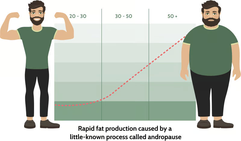 That excess estrogen stores fat in your chest and belly, kills energy, and blocks drive.